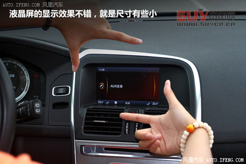 前排的乘客空間寬綽,身高173CM的模特有著超過一拳的頭部空間。不過我們的模特上車的第一件事兒就是打開遮陽板照鏡子,而XC60不僅前排車頂中央控制區的閱讀燈分左右兩側,遮陽板內也有照明系統。中央扶手比較短,而且不能前后、高低調節,所以對于手臂的支撐比較一般。
