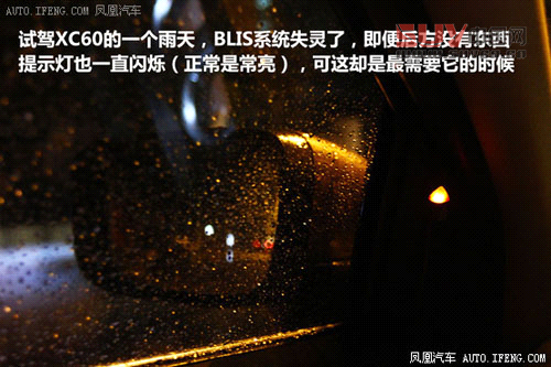 從車外就可以看見很多XC60配備的安全配置,中網黑色擋板內飾自適應巡航系統和城市安全系統的雷達(當然也需要配合車內后視鏡前方的探頭),左右后視鏡下方是BLIS盲區監視系統所用的探頭,并且沃爾沃還更加全方位的為XC60配備了雙曲率后視鏡。不過在試駕的這幾天中,有一天趕上下大雨,BLIS系統的指示燈無論后方有無車輛都一直閃爍不停,直到停好車后依舊如此,似乎雨天更需要這個系統吧。
