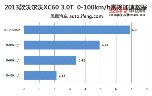 _ueditor_page_break_tag_XC60 T6車型官方給出的0-100公里時速加速成績是7.3秒,我們一直認為這個成績是不是有些過于保守了,后來考慮到1.9噸的車重也覺得可以理解,但實際上XC60的測試結果令我們眼前一亮。