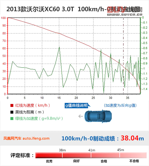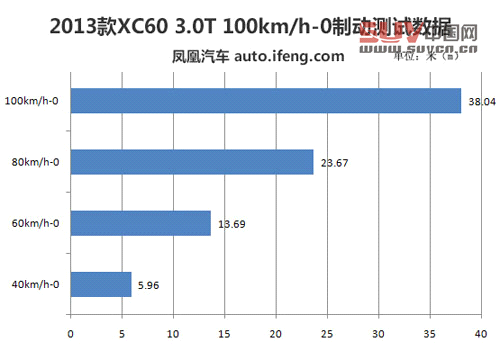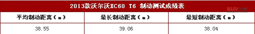 全力制動測試中,XC60的車身姿態略顯夸張,但如果考慮到1.9噸車重和更大的T6發動機壓在前軸的重量,那么這個姿態的抑制還是不錯的。在制動過程中,你可以感受到剎車系統的強大力度作用于車輪上,輪胎的抓地力表現也非常好,緊緊地咬住地面,從駕駛者的角度,當時的制動力真的很大,而最終38.04米的成績也證明了當時的身體感受是客觀的。