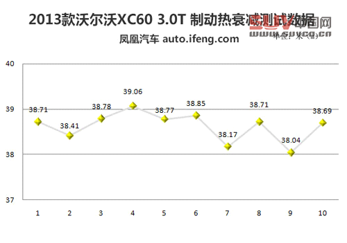 對于1.9噸車重而言,XC60的剎車成績可謂出色,而這還不是最好的方面,XC60的剎車系統在經歷了連續十次全力制動后,雖然倒數兩三次的時候剎車片開始冒煙,但卻并沒有影響剎車系統的腳感和成績,連續的全力制動成績非常穩定。堅持到最后一次測試結束,剎車系統的藍煙冒得不小,但面對這種極限測試,它的表現仍然是出色的。