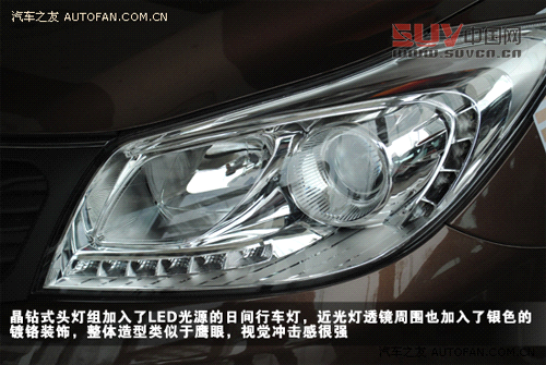 晶鉆式頭燈組加入了LED光源的日間行車燈,近光燈透鏡周圍也加入了銀色的鍍鉻裝飾,整體造型類似于鷹眼,視覺沖擊感很強(qiáng)。