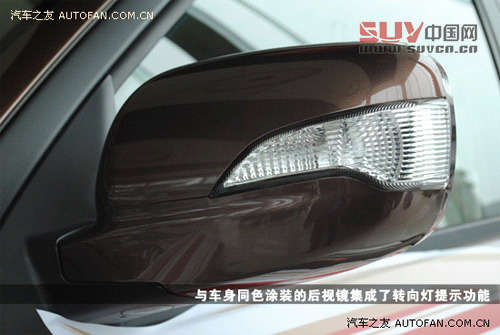 與車身同色涂裝的后視鏡集成了轉(zhuǎn)向燈提示功能。