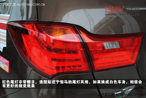 紅色尾燈非常醒目,造型貼近于寶馬的尾燈風(fēng)格,如果換成白色車身,相信會有更好的視覺效果。
