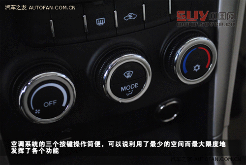 空調(diào)系統(tǒng)的三個按鍵操作簡便,可以說利用了最少的空間而最大限度地發(fā)揮了各個功能,但是初次使用可能上手不太容易,或許有人會為尋找“AC”鍵而擔(dān)憂。