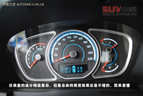 儀表盤的設(shè)計稍顯復(fù)雜,雖然周圍銀色裝飾想要表達(dá)一種運(yùn)動氛圍,但是淺藍(lán)色的簡單字體實在不能將儀表盤提升什么檔次,紅色指針也稍顯陳舊,但是總體的視覺效果還算說得過去,簡單易懂。