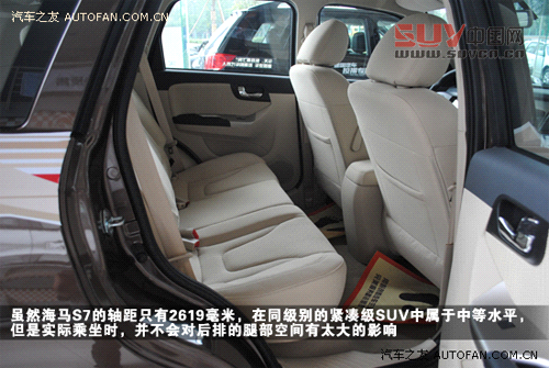 雖然海馬S7的軸距只有2619毫米,在同級別的緊湊級SUV中屬于中等水平,但是實際乘坐時,并不會對后排的腿部空間有太大的影響,加之SUV車型的坐姿高,而海馬S7又沒有四驅(qū)傳動軸來限制后排地板的平整度,整體空間表現(xiàn)可圈可點(diǎn)。