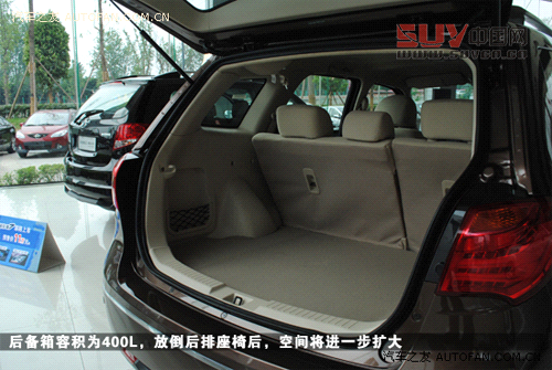 后備箱容積為400L,放倒后排座椅后,空間將進(jìn)一步擴(kuò)大。