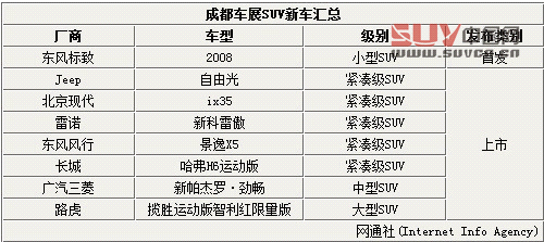 8月30日,成都車展迎來其第十六個年頭,各大汽車廠商均云集這個西部城市,為大家帶來一場真正的車市盛宴。而SUV車型已經逐漸成為中國市場主流車型,在此次車展上也將是不可或缺的一份子。下面本網編輯為大家盤點了2013成都車展首發和上市的8款熱點SUV新車。
