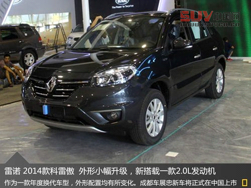 在車展當天,雷諾也將帶來全新改款車型2014款科雷傲,該款新車外形較老款而言變化較大,同時配置也有所升級,采用了仿實木裝飾和R-Link信息娛樂系統,另外還提供了盲點警示和倒車影像系統等實用配置。動力方面,新車新增搭載了一款2.0L自然吸氣發動機,最大功率101kw,最大扭矩191Nm。另外,現款科雷傲所配備的2.5L自然吸氣發動機也將會繼續匹配于新款車型。