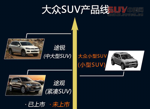 大眾目前SUV產(chǎn)品線目前僅有途觀(緊湊)和途銳(中大型)兩款SUV,途觀已經(jīng)進(jìn)行了中期改款,而途銳也將在明年秋季推出全新車型。大眾將推出的小型SUV出自MQB模塊化平臺(tái),未來推出后將很好的填補(bǔ)其在此細(xì)分市場的空白。