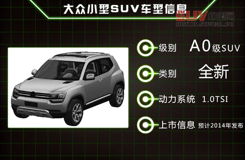 2013年7月26日報(bào)道 2012年的巴西圣保羅車展上,大眾小型SUV——Taigun概念車正式亮相,該車有望在2014年發(fā)布。近日記者獲得了該車的相關(guān)信息,大眾全新小型SUV在外觀方面與Taigun概念車基本保持一致,動(dòng)力方面搭載了一臺(tái)1.0L渦輪增壓發(fā)動(dòng)機(jī),上市后將與福特翼搏等車型競爭。