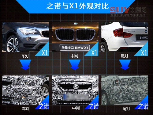 華晨寶馬在2013年4月份推出了旗下合資自主品牌“之諾”,作為國內(nèi)首個豪華品牌推出的合資自主品牌,之諾即將推出品牌下首款SUV車型。近日網(wǎng)通社了解到:新車基于寶馬X1平臺打造,造型設(shè)計與后者高度相似,其有望于年底之前在國內(nèi)首發(fā)亮相。