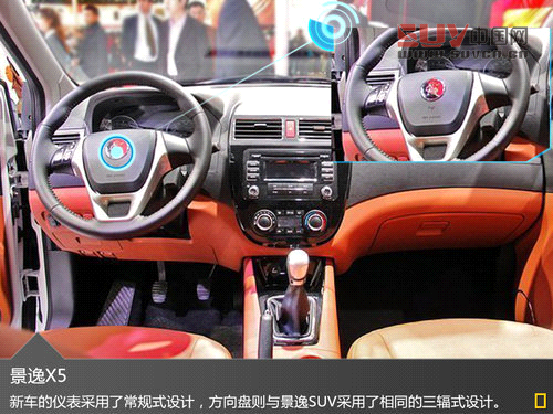 外觀方面,景逸X5前進氣格柵采用了三根橫向鍍鉻飾條裝飾,與前大燈進行了一體化設計,外側后視鏡也脫離了常規A柱的設計方案。內飾方面,儀表盤采用了常規平面式的設計,直觀性更強,同時,新車的方向盤也與景逸SUV相同。