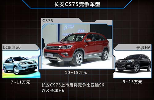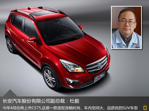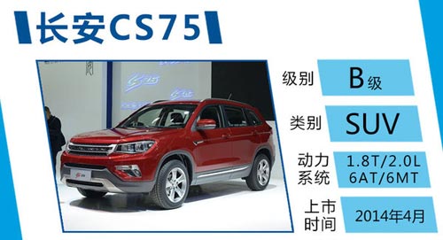 長安計劃在2014年4月20日推出的CS75,定位于中型SUV市場,車身長寬高分別為4650mm/1850mm/1705mm,軸距為2700mm。隨著新車型的推出,將進一步豐富長安SUV產品線,新車的在配置方面非常豐富,電子駐車、盲區攝像頭均有搭載。
