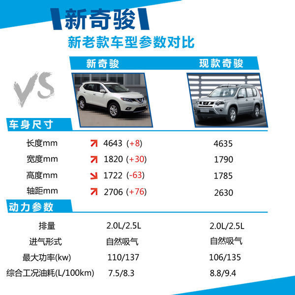 作為東風(fēng)日產(chǎn)SUV產(chǎn)品序列的重點車型,新奇駿已定于3月25日正式發(fā)布,有望于3月26日正式上市。新奇駿在車身尺寸方面有著大幅的增加,長/寬/高分別為4643/1820/1722mm,軸距達到2706mm,較現(xiàn)款車型加長了76mm。新一代奇駿新增了7座版本是其一大亮點。配置方面,新奇駿也進行了升級,配備了全LED遠近前大燈、智能感應(yīng)式全電動尾門、AVM全景式監(jiān)控影像系統(tǒng)和IPA自動泊車輔助系統(tǒng)。動力方面,新一代奇駿將會搭載2.0L和2.5L兩款自然吸氣發(fā)動機。