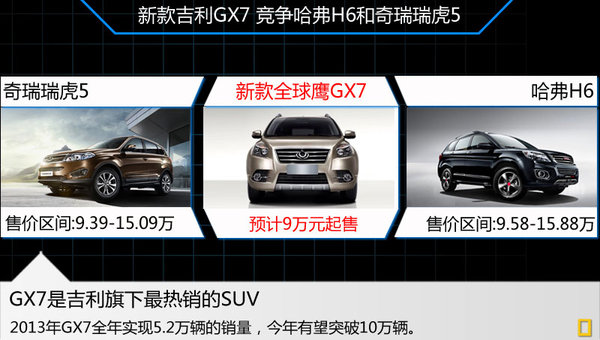 無論是市場需求還是產品競爭力,GX7都是吉利銷量增長最強勁的產品。待新款全球鷹GX7上市后,將與國內SUV市場中熱銷的哈弗H6和奇瑞瑞虎5展開競爭。出眾的配置和同級少有6AT變速箱,是新款全球鷹GX7的主要賣點。