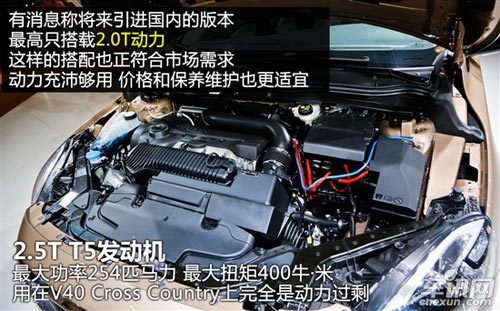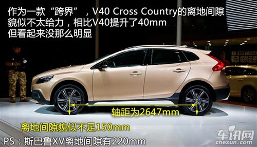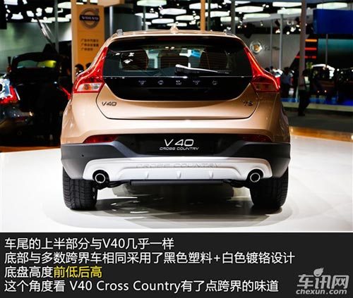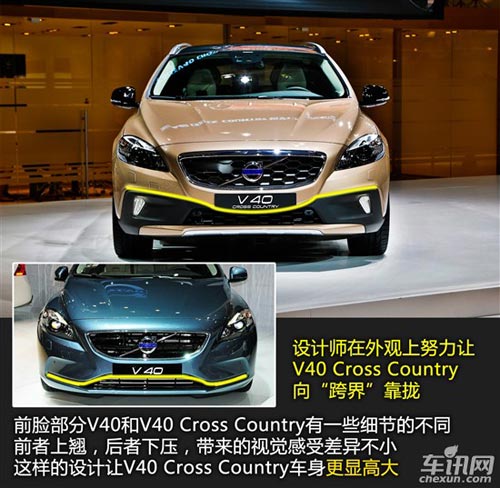 沃爾沃V40 Cross Country基于V40改進(jìn)而來(lái),定位跨界車。基于提高通過(guò)能力的設(shè)計(jì)思路,該車的離地高度相比V40增加了40mm。新車采用了全新設(shè)計(jì)的黑色保險(xiǎn)杠、后保險(xiǎn)杠、蜂窩狀前進(jìn)氣格柵、經(jīng)過(guò)改進(jìn)的前大燈等配置,使新車看起來(lái)更具野性。