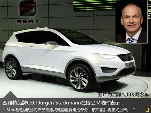 早在2011年的日內瓦車展期間,西雅特推出一款名為IBX的概念車。該車也視為日后西雅特首款SUV的雛形。而隨著大眾集團模塊化平臺的使用,未來西雅特首款SUV也將基于此平臺投產。“我們將盡快推出SUV,在推出概念車之后,該車很快將上市”斯柯達董事長爾根·斯塔克曼(Jürgen Stackmann)介紹到曾表示,在明年西雅特首款SUV將有望正式進入市場。對于該車的投產地點,借助大眾集團品牌共享的優勢,未來此車有望“落戶”斯柯達工廠進行投產。