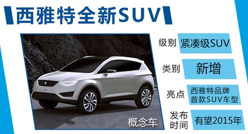 伴隨著中國等新興市場對于SUV車型熱度的持續升溫,近兩年了帶動全球SUV細分市場新一輪增長。此前一直在小型車與緊湊級車領域發展的西雅特品牌,也希望盡快進入這一細分領域。西雅特總裁克林斯曼·斯塔克曼(Juergen Stackmann)表示:“新款SUV將成為該公司產品攻勢戰略的重要組成部分,目前正在等待大眾集團的批準。”記者從海外媒體了解到,斯柯達首款SUV有望在明年正式上市,新車將與換代后的大眾Tiguan(國內為途觀)和斯柯達Yeti(國內為野帝)同樣基于MQB平臺打造,此外該車還有望在斯柯達工廠進行投產。