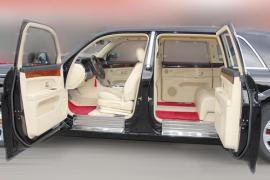 信息點(diǎn):軸距3900mm,比勞斯萊斯幻影EWB加長版還長,整備質(zhì)量3.15噸,造型沿襲檢閱車,主打高端接待、國賓用車市場