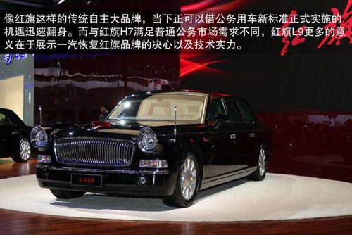 紅旗L系列主要將針對公務(wù)用車打造,其中L5將配備給正部級官員使用。對于大眾市場而言,紅旗將會在2014年開始通過私人定制的方式面向大眾市場。