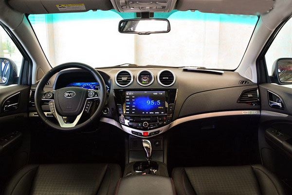 內飾方面,比亞迪S7科技感極強,黑色鋼琴漆證明該車同樣注重豪華氛圍。該車方向盤采用三幅式多功能方向盤,該方向盤集成了娛樂系統等快捷鍵。中控臺方面,中控臺頂部出風口中間的小液晶屏顯示的是氣溫、海拔、指北針、以及PM濃度。中央的10.2英寸大屏是其內飾中亮點之一,值得一提的是BuildYourDream云服務系統,該系統可以用手機來同步獲取車輛信息以及為車輛發送導航信息等功能。配置方面,比亞迪S7應有盡有,裝配了胎壓監測、無鑰匙啟動/進入、ESP車身穩定控制、電動方向盤調節、座椅加熱/記憶等。另外,該車擁有PM2.5濾凈系統,該系統擁有超高凈化能力,可在4分鐘之內將PM2.5值由每立方米500微克降低至50微克以下。