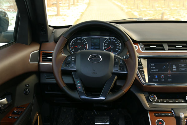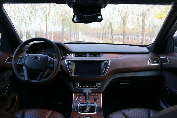 內飾方面,內飾的整體設計以及做工都有明顯的進步,配色也顯得有檔次,另外中控面板上大面積使用了軟性材質的處理,這點在同級別車中并不常見,值得稱贊。陸風X7的內飾在自主品牌中算是很不錯的,裝配工藝也比較精細,相比起陸風之前的產品,真可謂是洗心革面了!方向盤方面采用了四輻式多功能方向盤,帶來極佳的握感,底端還特意營造出平直線條,看起來很運動。多功能按鍵很大,用起來不會出現錯按的情況,而且反應速度也很快。儀表盤方面看上去比較簡潔明了,整體呈現的內容清晰直觀,中間的屏幕也能顯示一些基本行車信息。