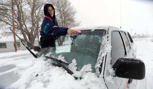 車主可以準(zhǔn)備一個(gè)硬質(zhì)塑料刮片,當(dāng)然,也可用專用的玻璃冰霜鏟,玻璃冰霜鏟更加方便、快捷,而且不凍手。當(dāng)玻璃上有雪和冰時(shí),使用塑料刮片或玻璃冰霜鏟除去。除冰雪時(shí),要防止把玻璃刮傷,塑料刮片或玻璃冰霜鏟不能來(lái)回刮,應(yīng)該向同一方向推。