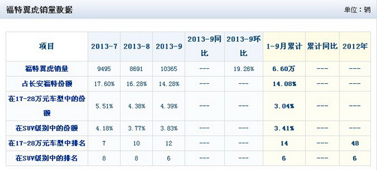 從上面的銷售表格數(shù)據(jù)中可以看到,或許是因為福特SUV車型在國內(nèi)市場的普及還為得到有效施展,因此自打其上市之后雖然得到了不少消費者的認可,但銷量一直沒能有一個非常滿意的效果,直到今年9月才突破了10000關口。另外,搜狐汽車行情編輯們了解到,目前該車型還能享有一定置換補貼政策,詳情請點擊《福特翼虎置換最高享5000元補貼 現(xiàn)車充足》進行查看。