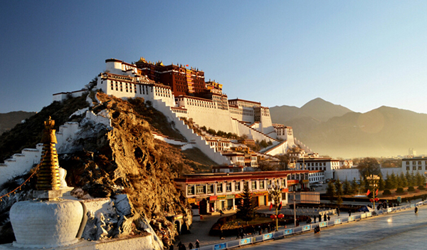 布達(dá)拉宮 位于西藏自治區(qū)拉薩市區(qū)西北方向的瑪布日山上,依山壘砌群樓重疊,是藏式古建筑的杰出代表