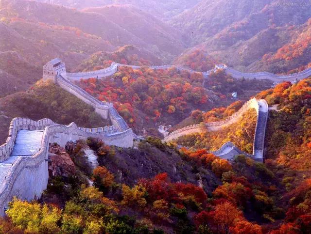 中秋前后是北平最美麗的時候。天氣正好不冷不熱,晝夜的長短也劃分得平勻。沒有冬季從蒙古吹來的黃風,也沒有伏天里挾著冰雹的暴雨。天是那么高,那么藍,那么亮,好象是含著笑告訴北平的人們:在這些天里,大自然是不會給你們什么威脅與損害的。西山北山的藍色都加深了一些,每天傍晚還披上各色的霞帔。——老舍《北平的秋》