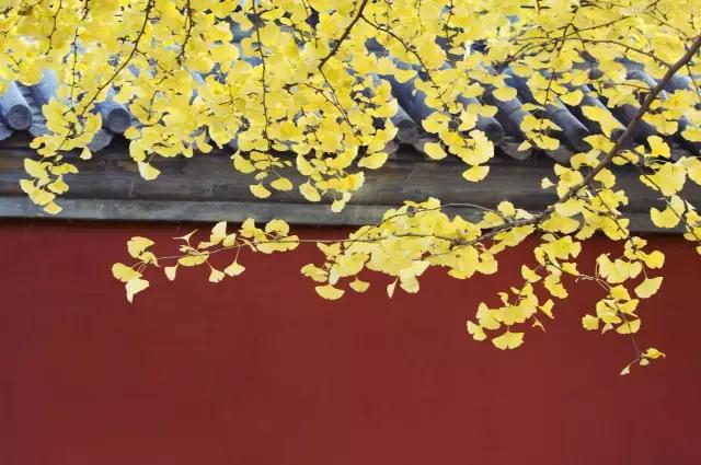 秋天有銀杏樹的地方不少,但有紅墻來襯的,只有北京。兩場秋雨一下,某個清晨,人們尚在睡眼惺忪時,秋意已經浸染了這座千年古都。一聲梧葉一聲秋,一點芭蕉一點愁,三更歸夢三更后,干燥的季風略過了漠北的高原堿淖、戈壁胡林,乘著晨曦間的徐徐煙云,就這般不動聲色地穿越了燕山屏障的諸個峪口,秋意已經浸染了這座千年古都,它恰如一杯美酒,醞釀于寒春苦夏,秋日正是它芬芳年華。