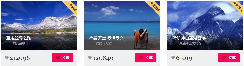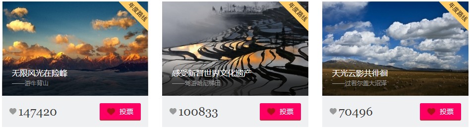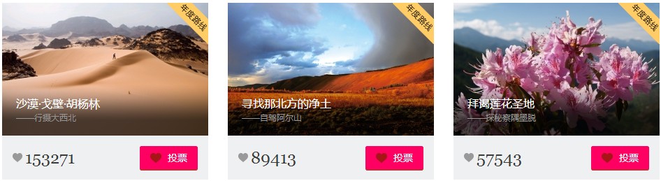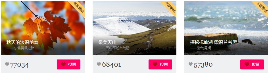 2013中國自駕游路線評選中線自然類,獲得網(wǎng)友投票前三的分別是: