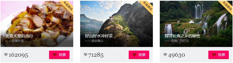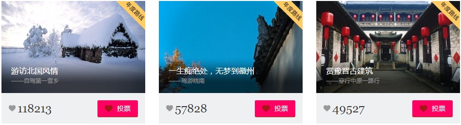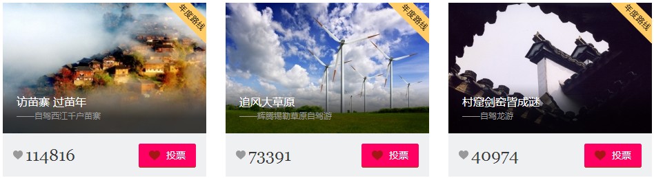 2013中國自駕游路線評選短線行攝類,獲得網(wǎng)友投票前三的分別是: