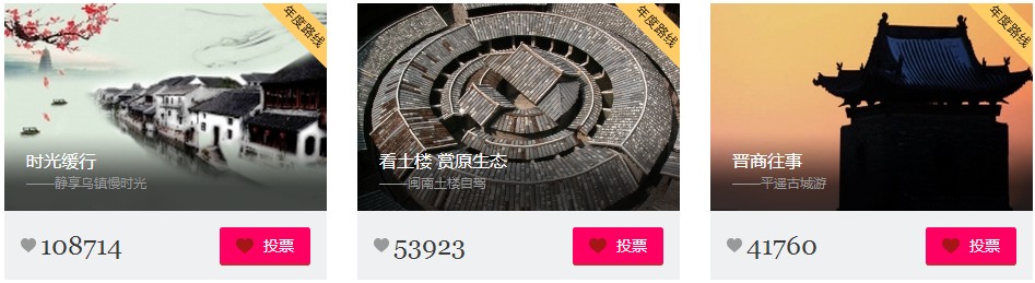 2013中國自駕游路線評選短線人文類,獲得網(wǎng)友投票前三的分別是: