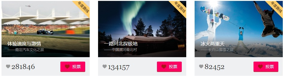 2013中國自駕游路線評選短線極限類,獲得網(wǎng)友投票前三的分別是: