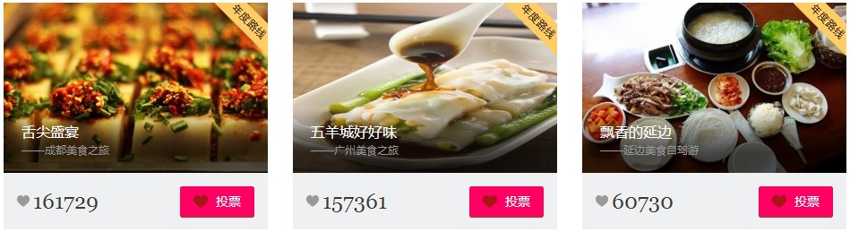 2013中國自駕游路線評選短線美食類,獲得網(wǎng)友投票前三的分別是: