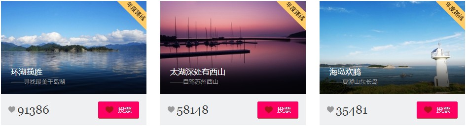 2013中國自駕游路線評選短線親水類,獲得網(wǎng)友投票前三的分別是: