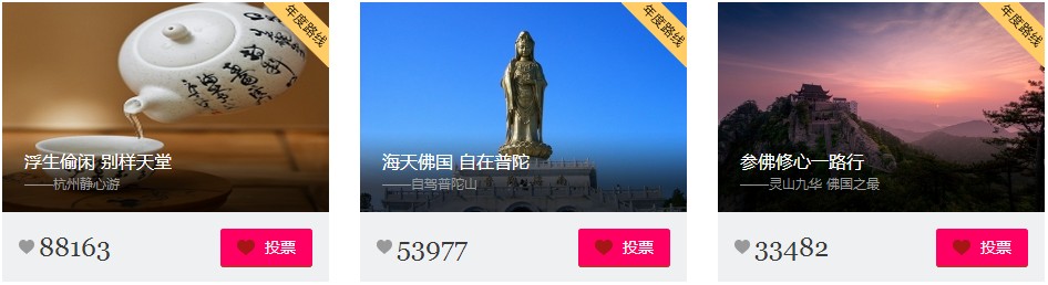 2013中國自駕游路線評選短線禪休類,獲得網(wǎng)友投票前三的分別是: