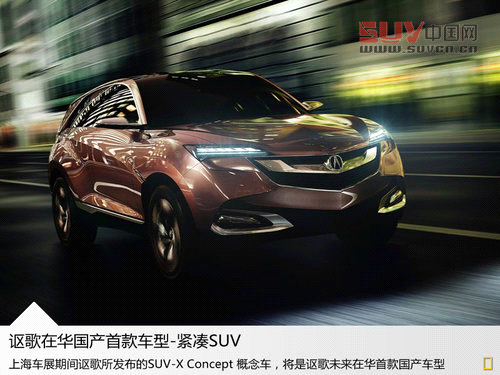 Acura(謳歌)在未來國產后的產品規劃方面,計劃投產的首款車型是上海車展期間首發的緊湊型SUV Concept SUV-X,并計劃在三年左右的時間實現國產。本田中國總經理倉石誠司表示,“由于緊湊型SUV是未來增長最快也是最大的一個細分市場,環境問題和中國的能耗限制越來越嚴格,同樣是我們選擇率先國產緊湊SUV的原因。”而這款車型未來也將與國內市場上眾多豪華SUV競爭,如奧迪Q3、寶馬X1以及雷克薩斯RX等。此外,這款SUV也是Acura(謳歌)首次在北美市場以外進行全球首發的車型,從而也展示出中國市場的重要性。