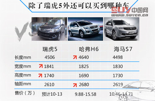 瑞虎5的軸距為2610mm,與其競爭對手哈弗H6的2680mm、海馬S7的2619mm的軸距相比并不占有優(yōu)勢,但整車憑借1841mm的寬度和1740mm的高度同樣可以提升內(nèi)部空間,使乘坐者可以得到更好的乘坐體驗(yàn)。