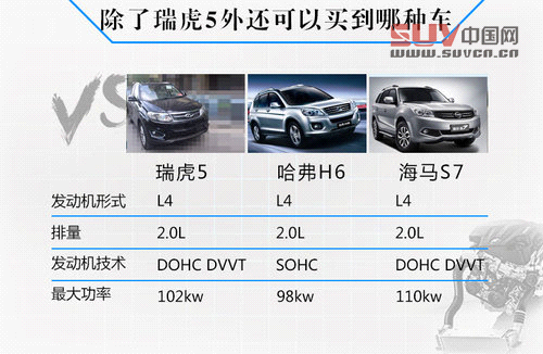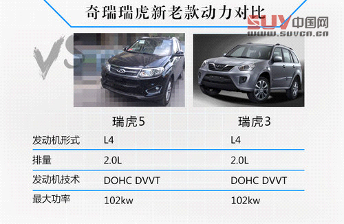 奇瑞瑞虎5和瑞虎3車型都搭載了直列四缸2.0L自然吸氣發(fā)動(dòng)機(jī),發(fā)動(dòng)機(jī)都使用的是DOHC DVVT技術(shù)。在最大輸出功率方面也基本和現(xiàn)款車型保持一致,達(dá)到102kw。