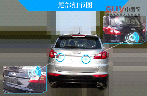 瑞虎5采用了更大面積的進(jìn)氣格柵,并且用銀色鍍鉻條貫穿中間,十分醒目。前大燈也從倒三角形變?yōu)榱思?xì)長型結(jié)構(gòu)。在車的尾部,瑞虎5配備了橫向LED燈管后車燈,這與現(xiàn)款的豎直型設(shè)計(jì)十分不同。此外,新車還取消了后備胎罩,整體風(fēng)格逐漸向城市SUV靠攏。