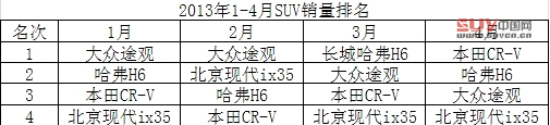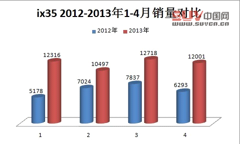 伴隨著銷量一起上升的,還有ix35的市場排名。從2013年1~4月SUV銷量排名來看,ix35銷量一直穩居SUV市場前四位,將傳統日系品牌豐田RAV-4等甩在身后。ix35的快速崛起,將韓系SUV帶入了由德系和日系壟斷的SUV領地,將這一市場長久以來雙雄對決的局面變成了三強爭霸,讓SUV市場演繹出了更多的精彩。
