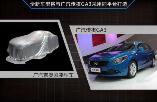 根據廣汽吉奧對于未來新車型的相關規劃,定位在緊湊級市場的全新車型有望在2013年11月舉辦的廣州車展上首發亮相,并將于明年正式上市。對此廣汽吉奧銷售公司總經理李峰曾表示:廣汽吉奧將在2013年發布首款A級乘用車型。新車型有望與同為廣汽集團旗下緊湊車型的廣汽傳祺GA3采用同平臺打造,大幅降低研發成本。