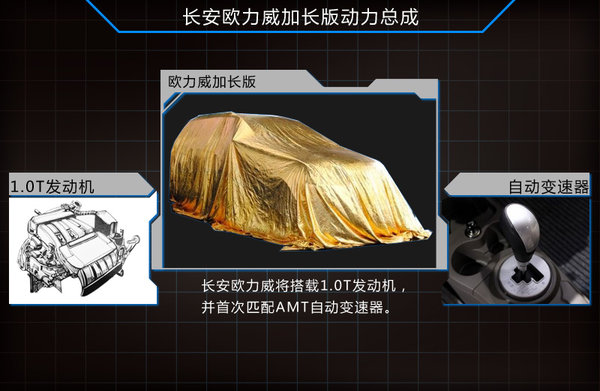 歐力威加長版在動力方面將新增一臺長安汽車自主研發的1.0升渦輪增壓發動機,最大功率88kw,最大扭矩180N·m,從動力參數上看表現數據相當出色。與之配合的將是一款同樣自主研發的AMT序列自動變速器,相比手動變速器新車舒適性也明顯提升。