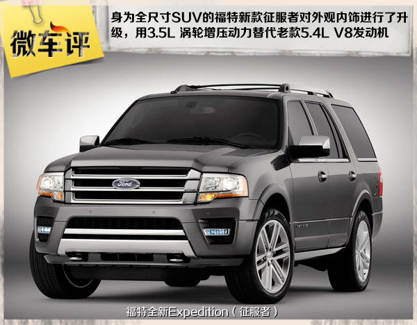 近日,福特全新Expedition(征服者)官圖正式發(fā)布,新車外觀及內(nèi)飾進行了調(diào)整,不過最大的變化應(yīng)該是搭載了3.5L EcoBoost渦輪增壓發(fā)動機。據(jù)悉,福特全新征服者即將在美國德克薩斯州達拉斯車展上亮相。