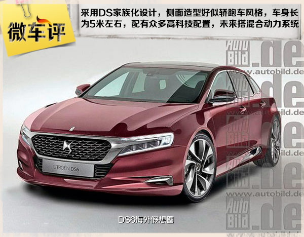 外觀方面:DS6將采用DS的全新家族設(shè)計理念,犀利的前臉以及轎跑風(fēng)格的車身都為新車增色不少。據(jù)悉,DS6車身長度將在5米左右。此外,新車將配備抬頭顯示、信息娛樂系統(tǒng)、空氣懸架等。