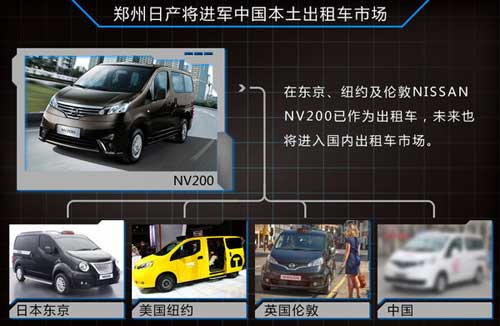 加上之前日本、美國及英國的示范效應,鄭州日產也將重點考慮中國本土出租車市場。對此,日產汽車公司企業副總裁村上秀人就表示過強烈的“意愿”:“鄭州日產NV200在中國賣了多年時間,已有一定的市場基礎,我們隨時可以提供NV200出租車給中國的出租車公司,關鍵是中國市場有這方面的需求。”而這一想法在近日有了落實,鄭州日產汽車有限公司公關部部長霍靜談及了相關進展:鄭州日產目前正與河南政府進行磋商,將率先開拓河南本地出租車市場。